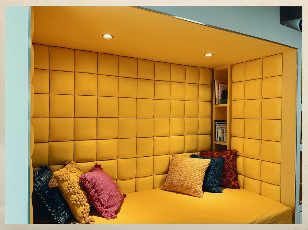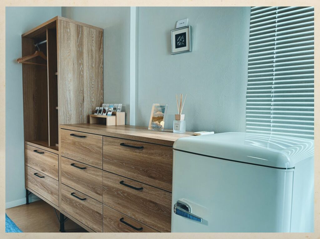 1970〜80年代のアメリカンホームコメディを思わせるレトロポップなリビング。ビタミンカラーに染まった空間で、心も晴れやかに。玄関の扉を開けた瞬間から、あなたが主役のストーリーの始まりです。