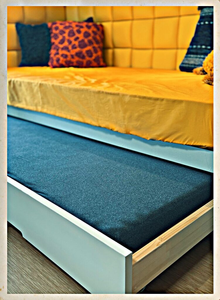 1970〜80年代のアメリカンホームコメディを思わせるレトロポップなリビング。ビタミンカラーに染まった空間で、心も晴れやかに。玄関の扉を開けた瞬間から、あなたが主役のストーリーの始まりです。